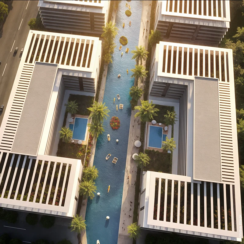 Riverside Views Indigo 2 by DAMAC is stocked with endless amenities-the make of a seven-star hotel. Special features include Zen Spa, essential oils lakes, aqua fitness zones, open-air gyms, hydroponics farms, floating restaurants, and opera. Meanwhile, there are co-actualization spaces, Peace Rooms, and colorful gathering areas-to promote balance along with a wellness lifestyle.
